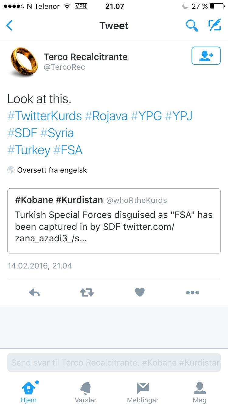 Kurdiske kilder sprer rykten/info om at YPG/SDF skal ha tatt en tyrkisk spesialsoldat til fange....