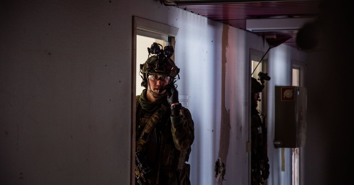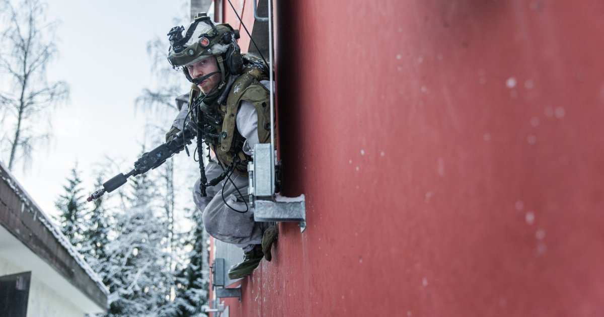 – Bygningsmassen er mer komplisert, det er utfordrende med flere bygg og flere etasjer. Vi trener på hvordan vi beveger oss, tar oss fram og tar ut en fiende i bebyggelse. Og vi får trent på hvordan lag og tropp og kompaninivå fungerer sammen.
