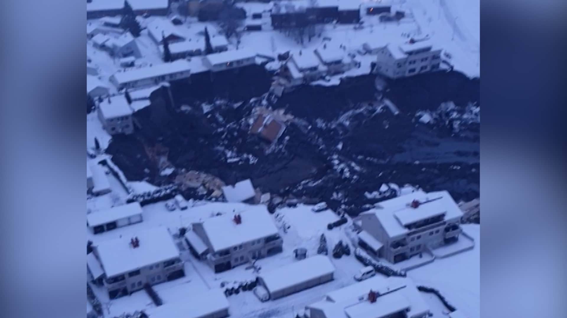 Mange hus forsvant i raset, og i de første timene var det 26 mennesker som var savnet.