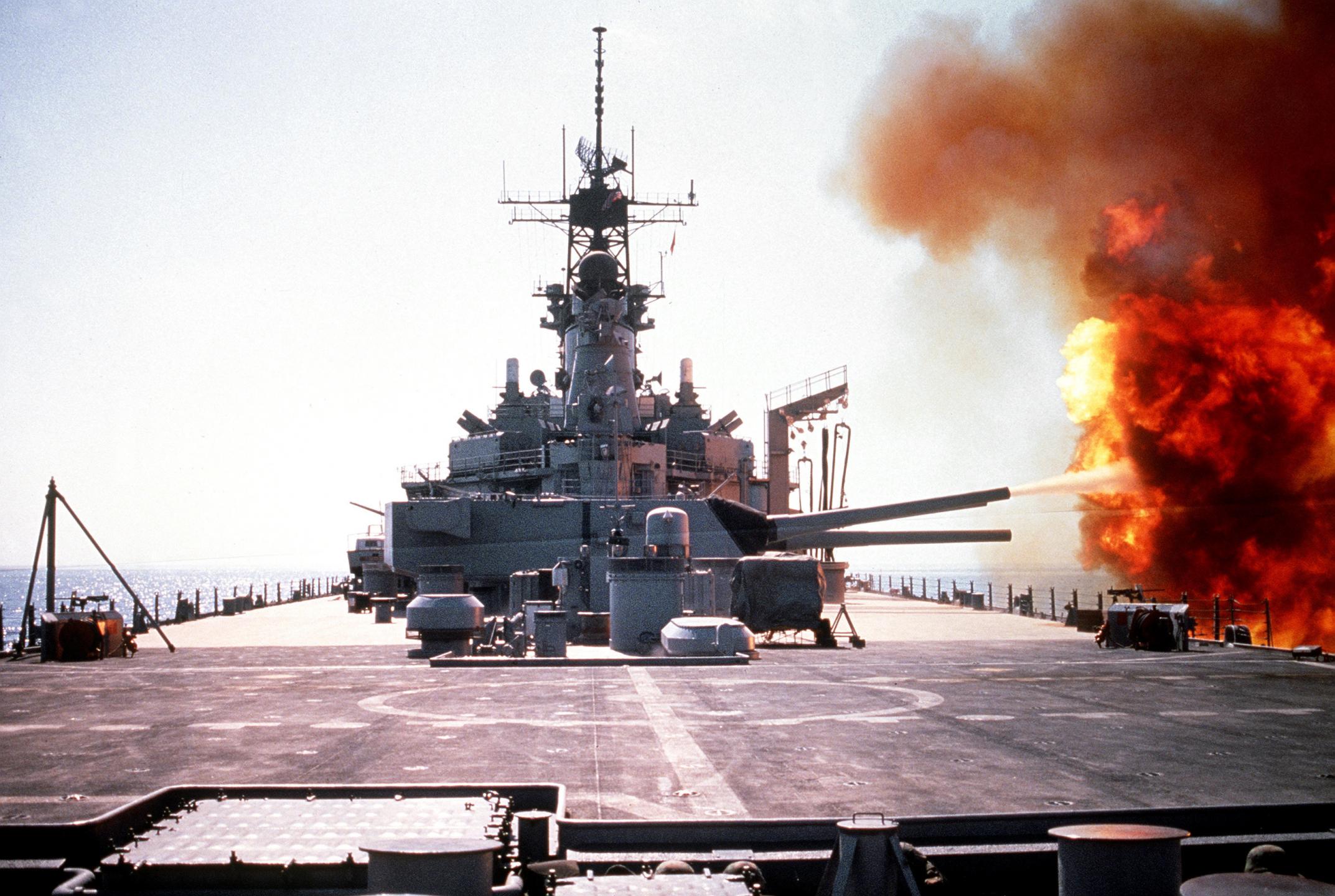 Slagskipene USS Wisconsin og USS Missouri engasjerte irakiske bakke- og sjømål med 16-tommers artilleri, Tomahawk, 5-tommers og 20 mm, og kom dermed i strid for første gang siden Korea. Dette var også siste gang i verdenshistorien at slagskip deltok i krig.