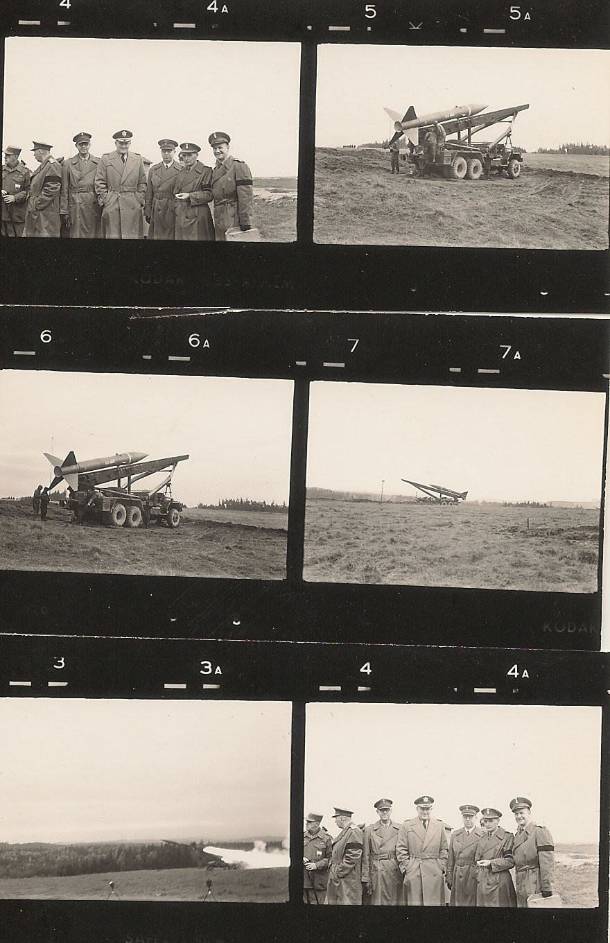 Hei! Når jeg det siste halvåret har skannet/digitalisert gamle bilder, negativer og dokumenter etter min bestefar har jeg kommet over enkelte ting som jeg ikke har greid å sette i riktig sammenheng ennå. Bildene nedenfor er i den kategorien. Bildene er høyst sannsynlig tatt i 50- eller 60-årene. Jeg vet ikke hvor; det kan like gjerne være i USA eller et annet NATO-land som i Norge. Er det noen som har innspill på hva slags våpen det er snakk om, og eventuelt annet av innspill ut fra bildene?