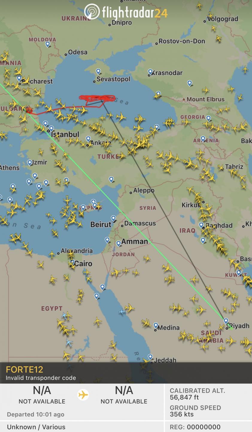 Blir stadig imponert over vestlige airborne assets i AO. Så en E-3 sørvest for Krim, og over Moldova tidligere i dag, samt at FORTE12 har vært på banen særdeles lenge, med noe FR24 påstår er origin i Riyadh. Hvorvidt origin stemmer vet jeg ikke, men jeg har mine tvil. Ser som regel FORTE ut fra Sicilia. Uansett er dette mer enn hva jeg normalt kan finne på en søndag siden krigen startet.