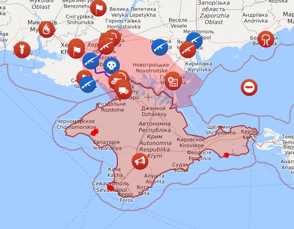 Dette samsvarar omtrentleg med kva LiveUAMap viser av russisk framgong ved Krim. Applikasjonen har ikkje tilsvarande oversikt for dei ...