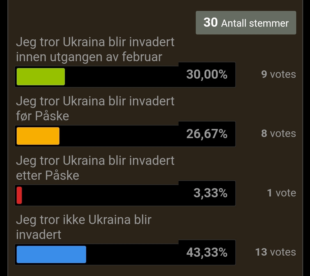 Minner også om avstemmingen som foregikk her på forumet kun kort tid før Russland invaderte Ukraina.