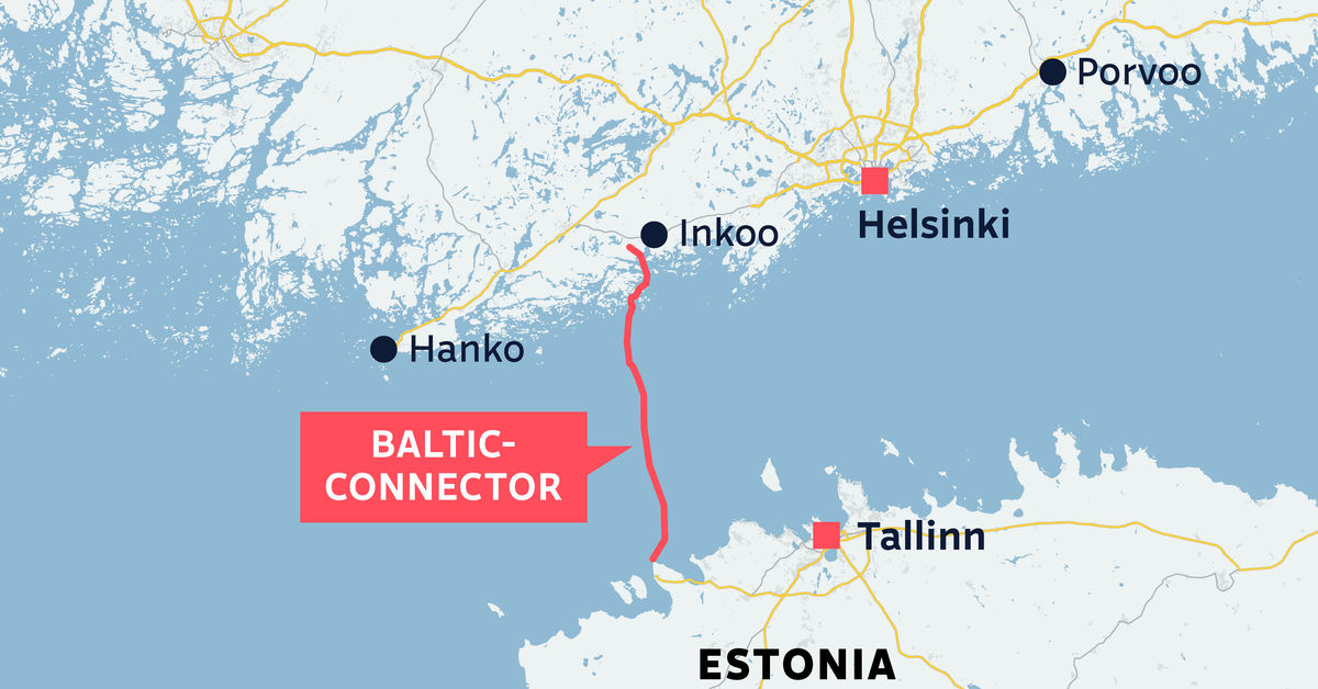 The gas pipeline between Inkoo, Finland and Paldiski, Estonia, was severed last October. The likely culprit was a Chinese ship bound for St. Petersburg, which dragged its anchor along the seabed.