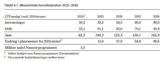Total kostnadsramme i milliarder, med utgift i 2025 i parentes