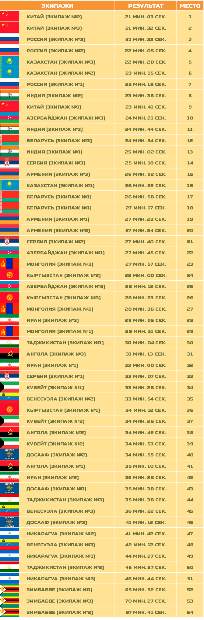 Totalt 54 lag, fordelt på 17 land skal konkurrere i 23 forskjellige øvelser. Alle land bruker russiske T-72B3, utenom Kina med sine nye Type-96B, og Hviterussland i sine T-72B....