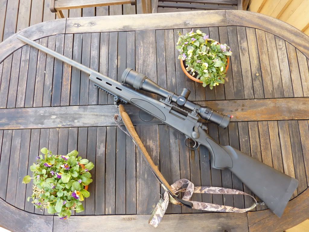 Benytter anledningen til å legge ut et bilde av børsa mi. Remington 700 SPS Varmint links i .308W. Tung som bly og lang som ei flaggstang. Kikkerten er en Meopta Meostar R1 4-16x44 LRT (Long Range Tactical), og gjør ikke akkurat børsa lettere... Kommer nok til å kappe pipa noen centimeter og montere lyddemper, trolig en BR Reflex T8. I tillegg mangler jeg en Harris tofot og ei reim som gjør at jeg kan slepe den med meg ut på post.