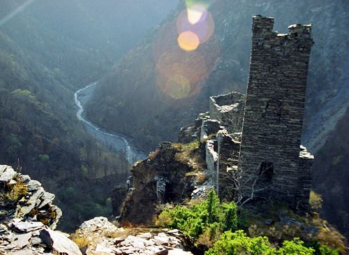 Ruiner av festningen Khir-di, og 10 generasjoner tilbake i Kir-di borgen levde en stor ridder Berigg-Bitsji. Trolig bildet ble tatt i 1980 tallet, de 3 tårn ble beskyttet av UNESKO, men krigene fra 1994 til 2007 med vilje ble ruinert av ukjente mlitære og bombet ned av ukjente fly. Festingen tilhører Thierra/Therla
