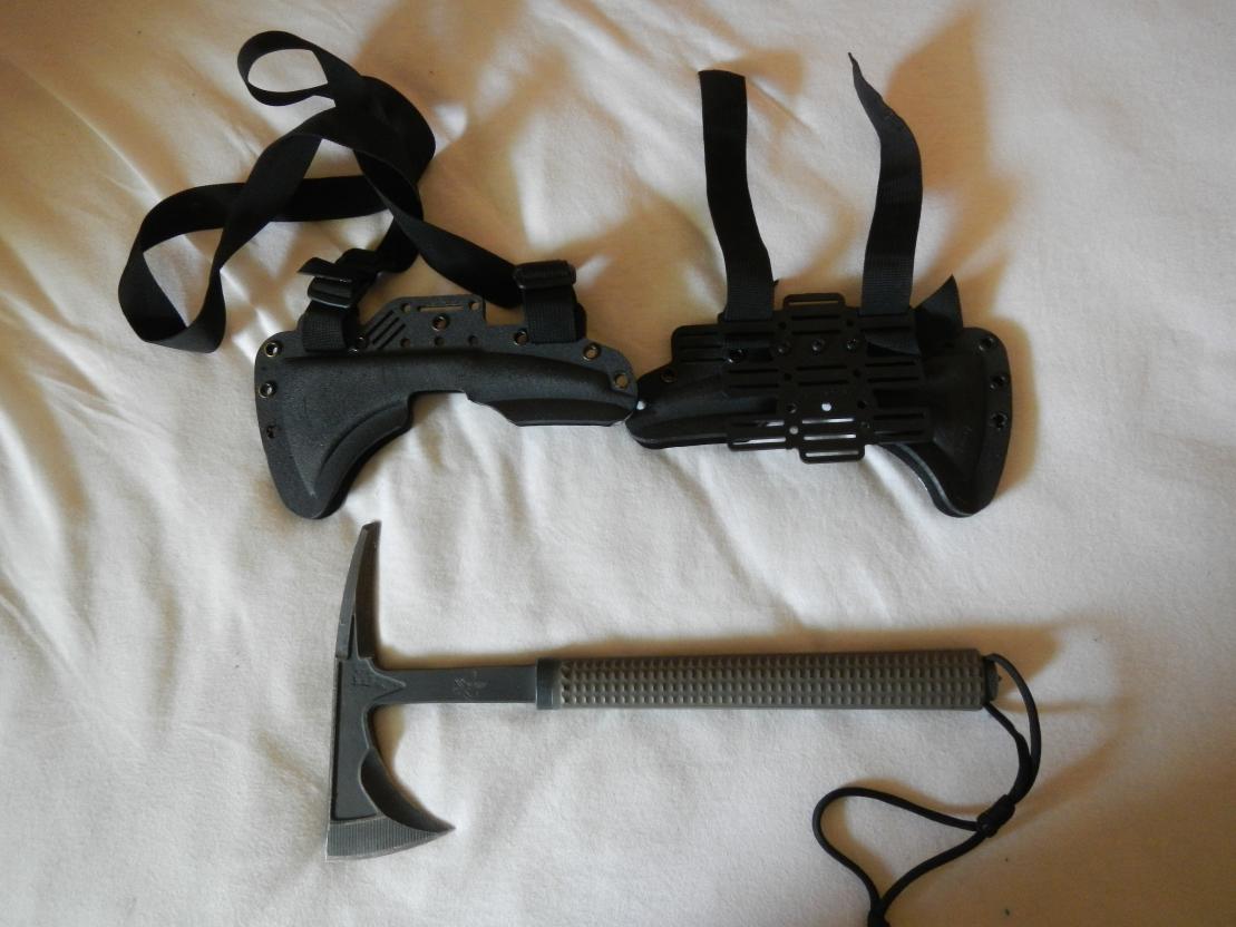 Tomahawken selges med skulderhylster og hylster med molle feste. Begge hylsterene er med quick draw funksjon.