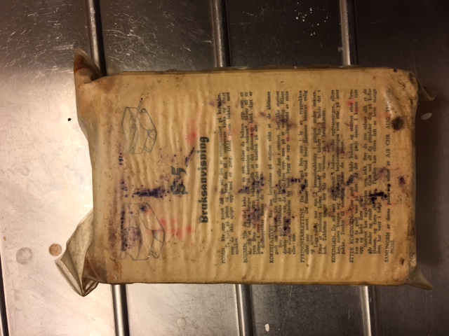 Vi har kjøpt et hus som i sin tid ble brukt av både tyske- og norske militæret under 2.verdenskrig. I skattekammeret fant jeg en pakning som det står S-5 Kokesjokolade, Militærpakning.