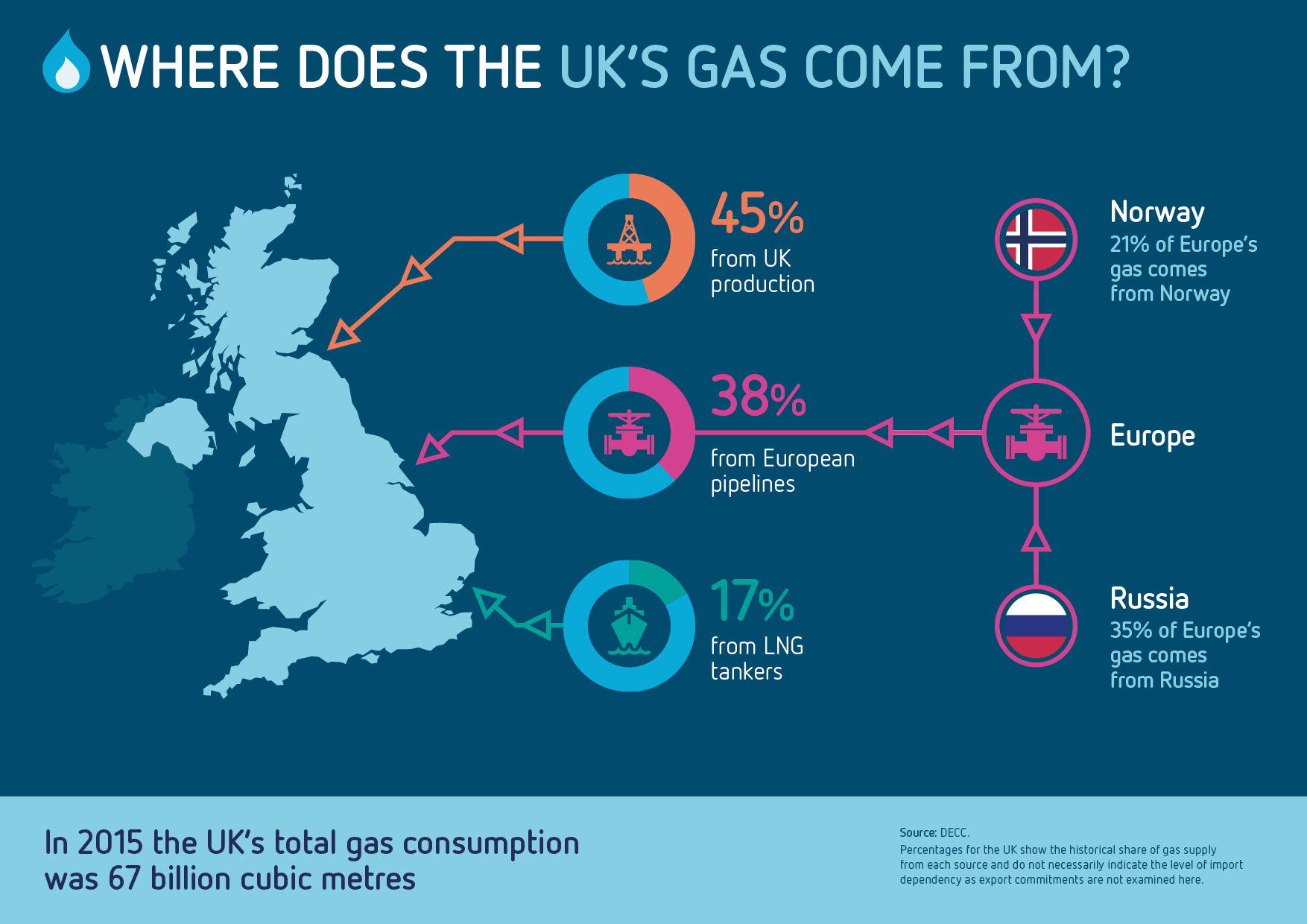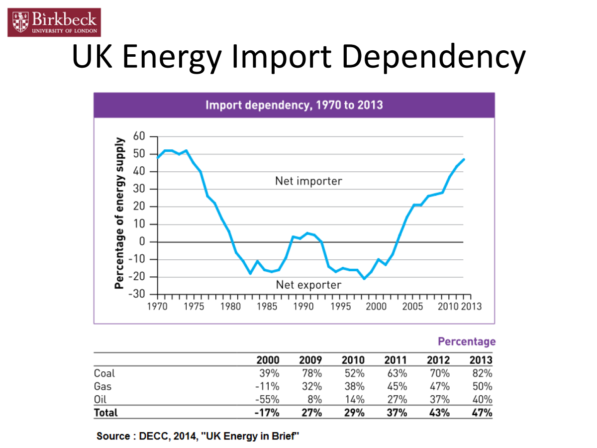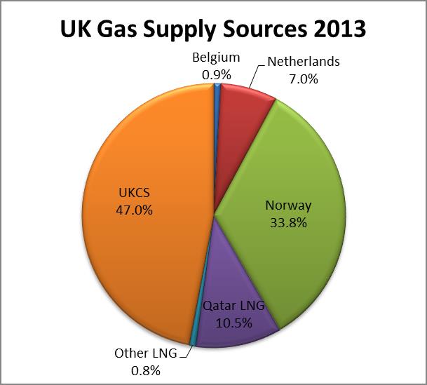 Oversikten over avhengigheten av import til UK gir ikke det fulle bilde da ca 1/3 av gassen UK forbruker konsumeres av husholdningene. Det er fremdeles ganske vanlig med både gass ovn og gass radiatorer i Engelske hjem og det er ikke bare gjort i en håndvending å fortelle alle disse husholdningene at de nå må lappe ut noen tusenlapper for å kjøpe elektrisk ovn/radiator for å koble seg opp på Atom/Kull-kraften i støpslene.[/QUO...