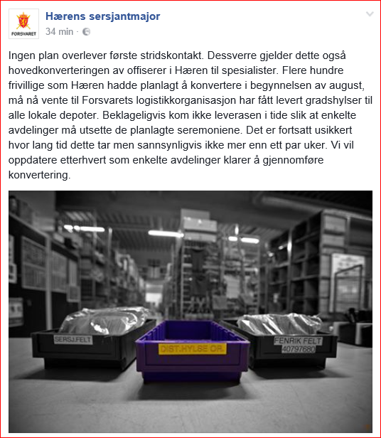 På FB-siden til Hærens sjefssersjant kan vi nå lese at det ble holdt konverteringsseremonier hos FKL og HVS denne uken: https://m.facebook.com/norarmycsm/...