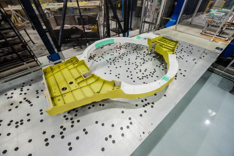 Dette er fra Lockheed Martins fabrikk i Marietta, Georgia. Bildet viser et spant som skal brukes i kjernen av flyet, rundt motoren, på det første norske flyet, AM-1. Se stolen i bakgrunnen - den gir et godt referansepunkt for å se akkurat hvor stort dette spantet faktisk er!...