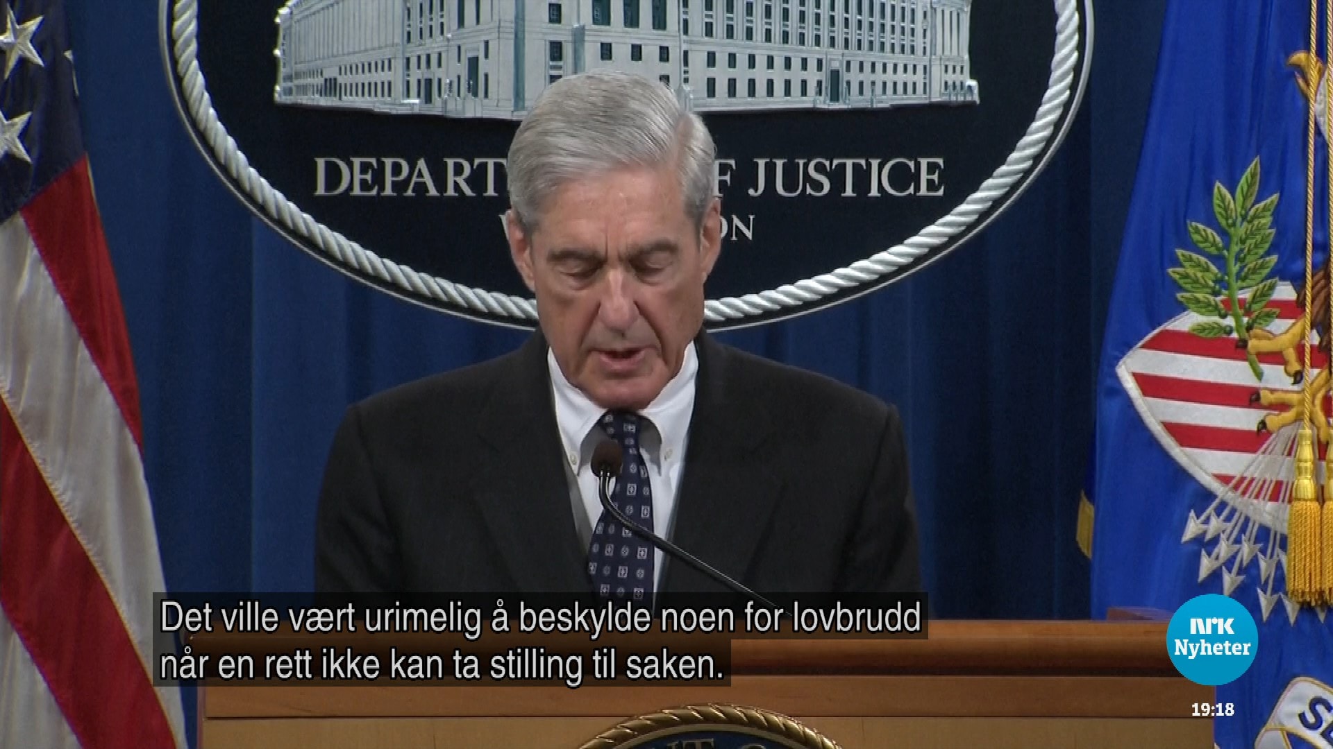 Spesialetterforsker Robert Mueller sier han ikke hadde mulighet til å tiltale president Donald Trump for lovbrudd.