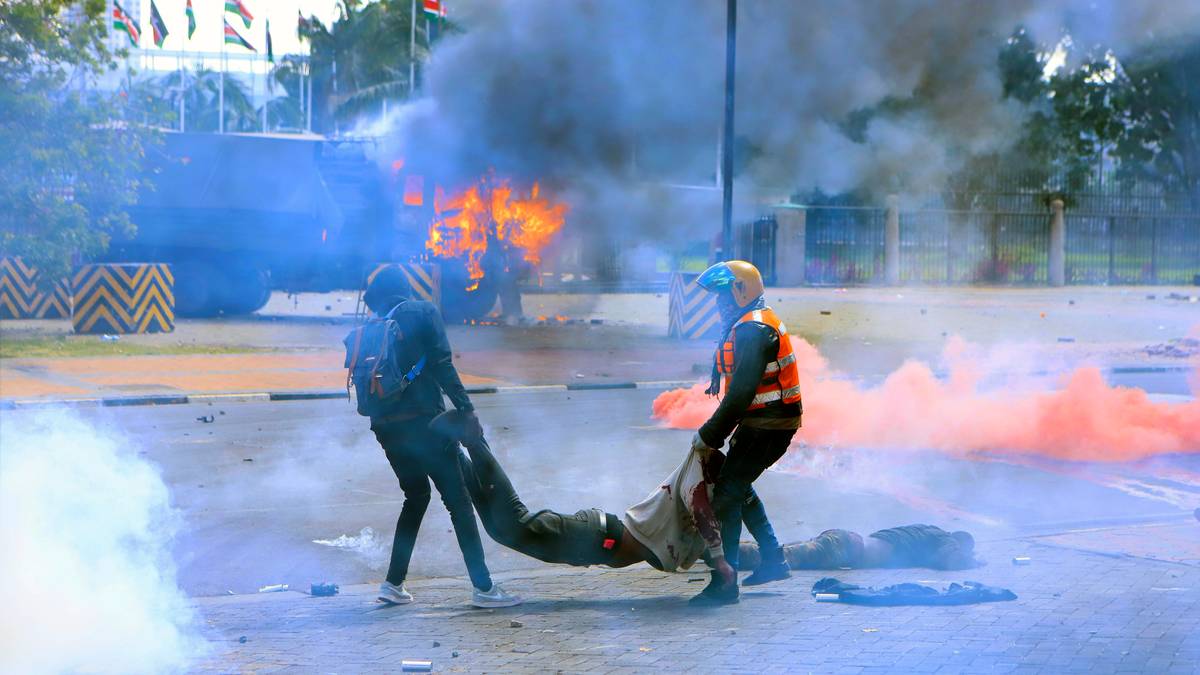 Usikre dødstall etter at hundrevis av demonstranter stormet parlamentet i hovedstaden Nairobi. Demonstrantene er imot en ny skattelov som ble vedtatt i dag.