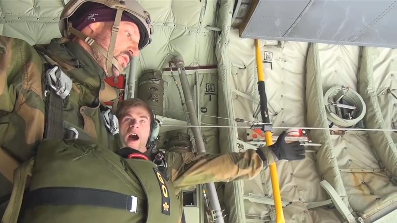 Ja? Altså ikke synlig, hvorvidt dette er pakket i bag eller en søppelsekk spiller ingen rolle. Slik jeg leser det var han på vei til øvelse, og ikke på øvelse....