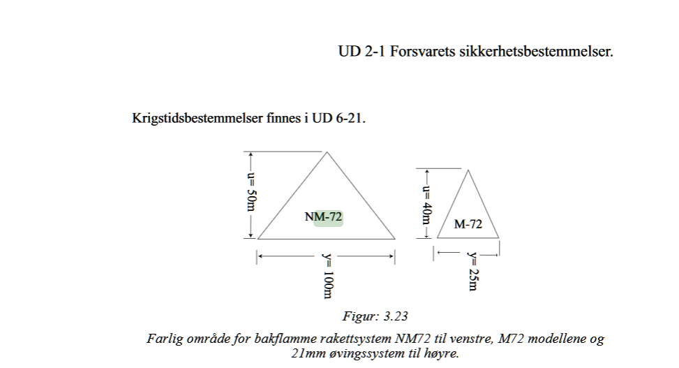 Jeg har et par spørsmål til dette. I mine 20 år gamle notater skrev jeg av fra daværende M72-reglement at sikkerhetsområde bak M72 i krig (der personell må være i dekning ved skyting) e...