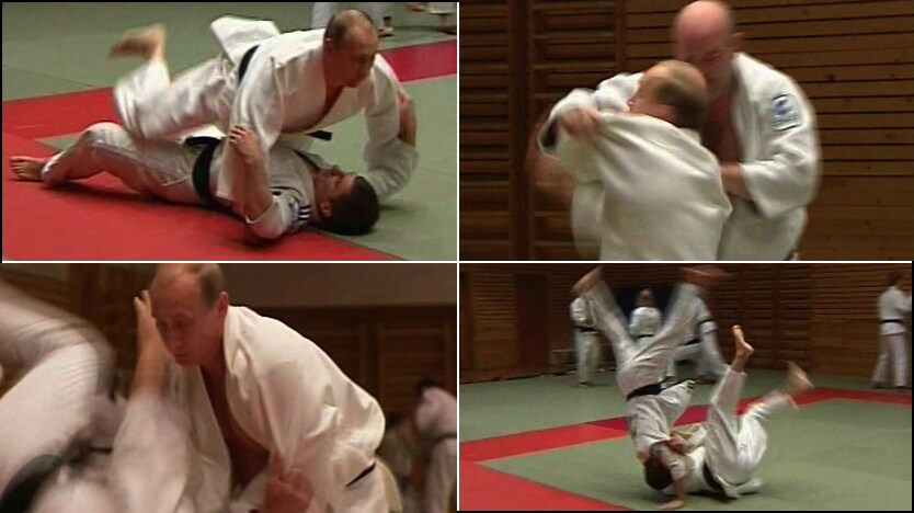 Russlands statsminister Vladimir Putin fikk vist frem nok en av sine macho-sider da han besøkte judoskolen i St. Petersburg som han selv gikk på som ung.