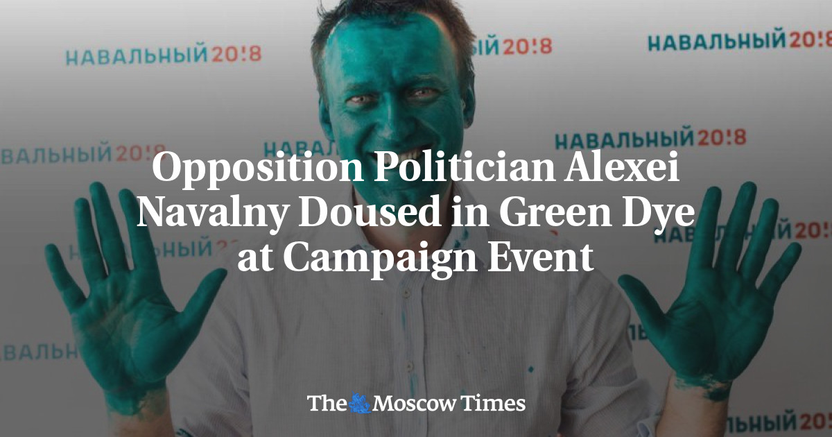 Opposition politician and staunch Putin critic Alexei Navalny was doused in bright green dye during a campaign event in the eastern Russian town of Barnaul Monday morning.