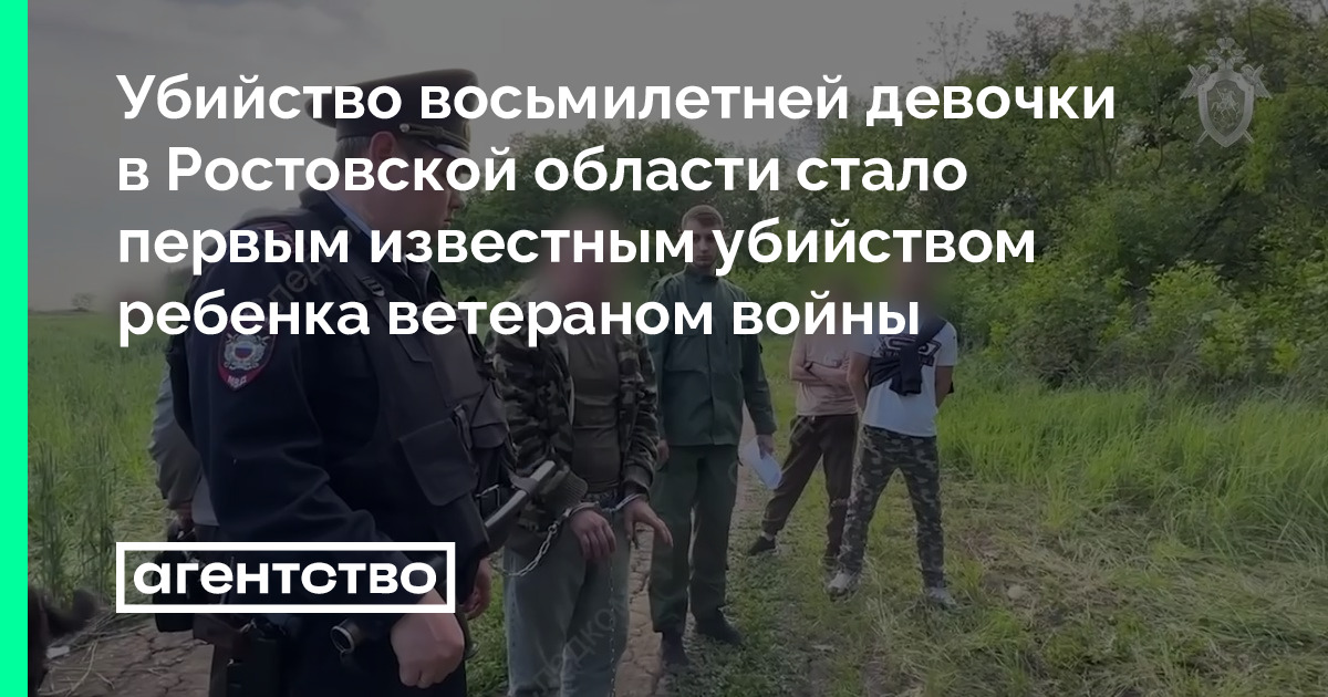 Убийство восьмилетней девочки из станицы Ольгинской Аксайского района Ростовской области стало первым известным случаем убийства ребенка ветераном войны в Украине, свидетельствует анализ «Агентства». Крупнейшие государственные информагентства ТАСС и РИА Новости не стали сообщать о том, что признавшийся в убийстве мужчина участвовал в российском вторжении.