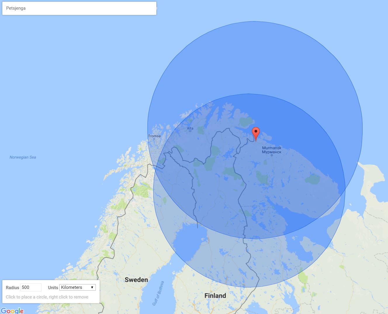 Ta gjerne frem google maps og dra en 500km radius ut fra Alakurtti eller Petsjenga og se om du blir i godt humør av det.