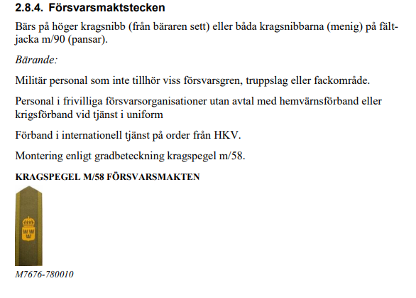 Var litt rask og upresis her, men det sto jo mer om det i reglementet og symbolet betyr Försvarsmakten (s 57):